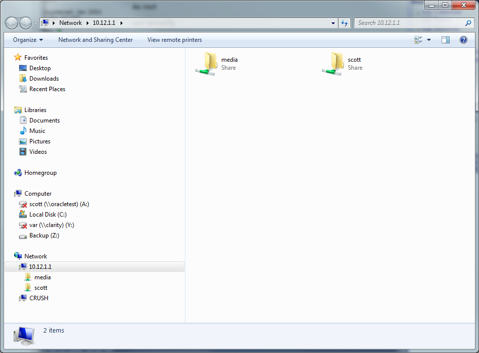 So there we have it, a media folder anyone can access, and a ‘scott’ share that I’ll need to authenticate with (HOME\scott user)