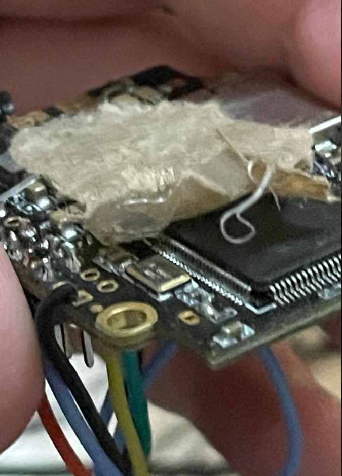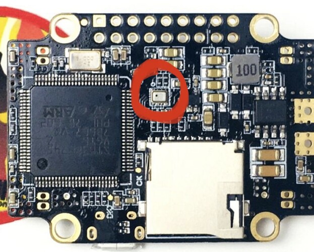 On this flight controller, the barometer is on the bottom of the board. It has a little tiny hole in it to allow pressure sensing. In my 🤡'y install, this is covered by hot glue and velcro.